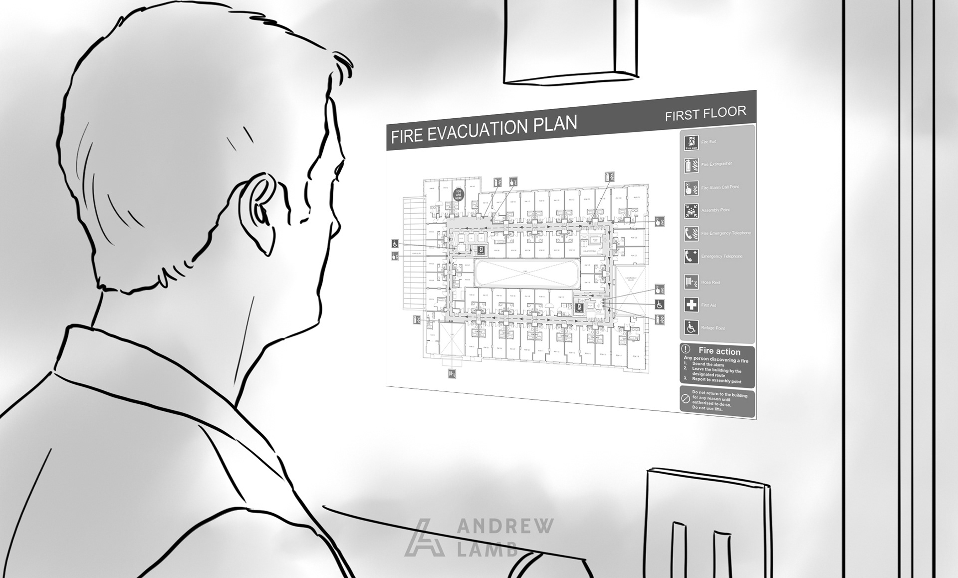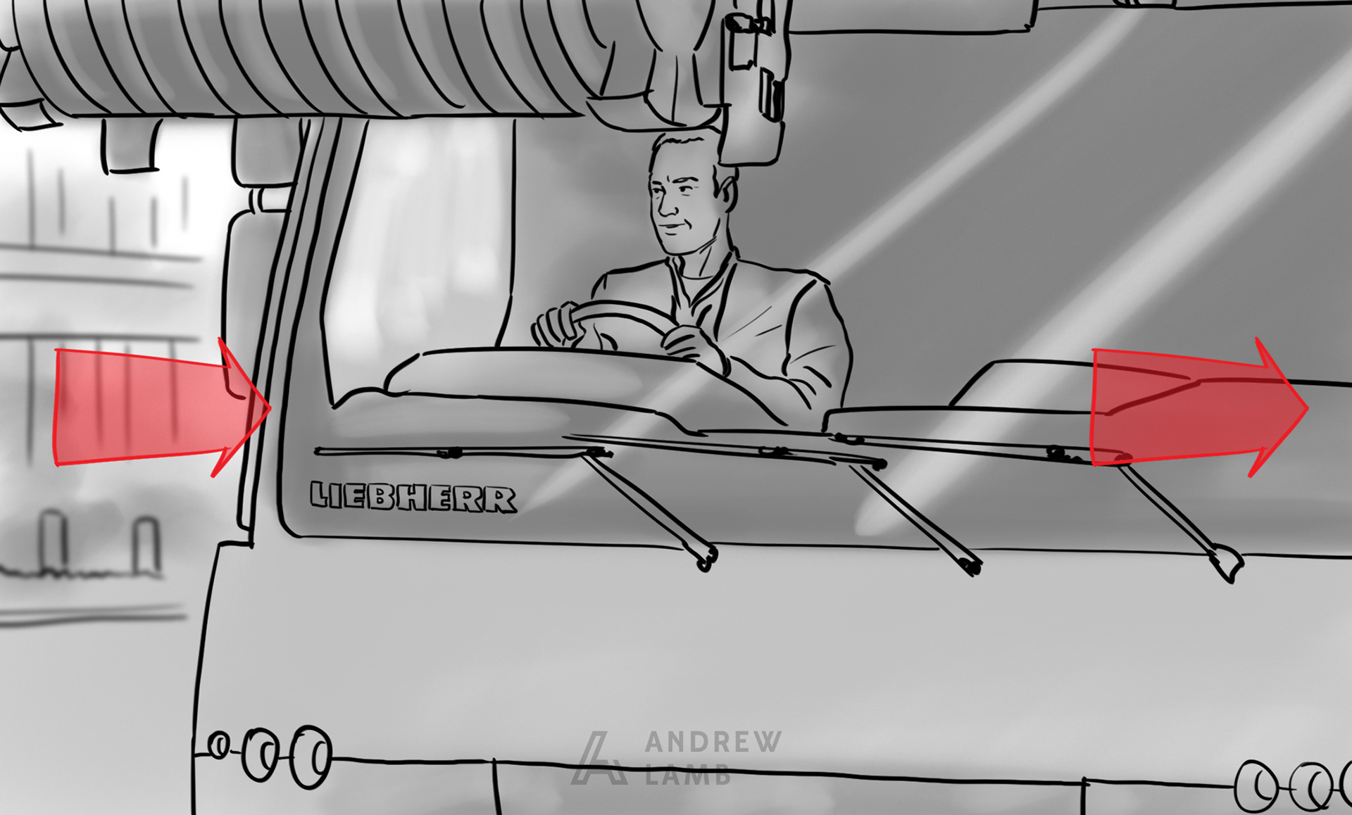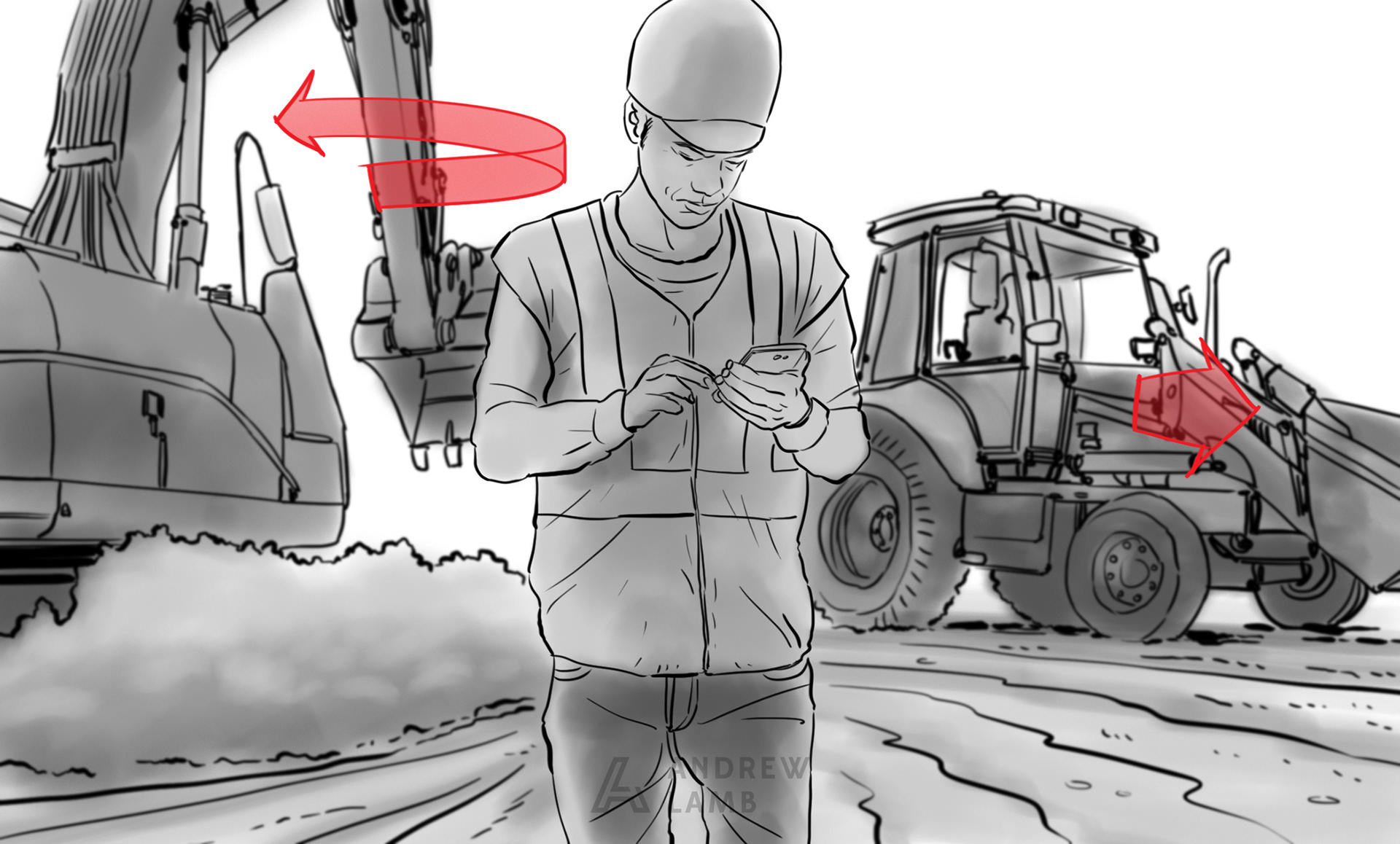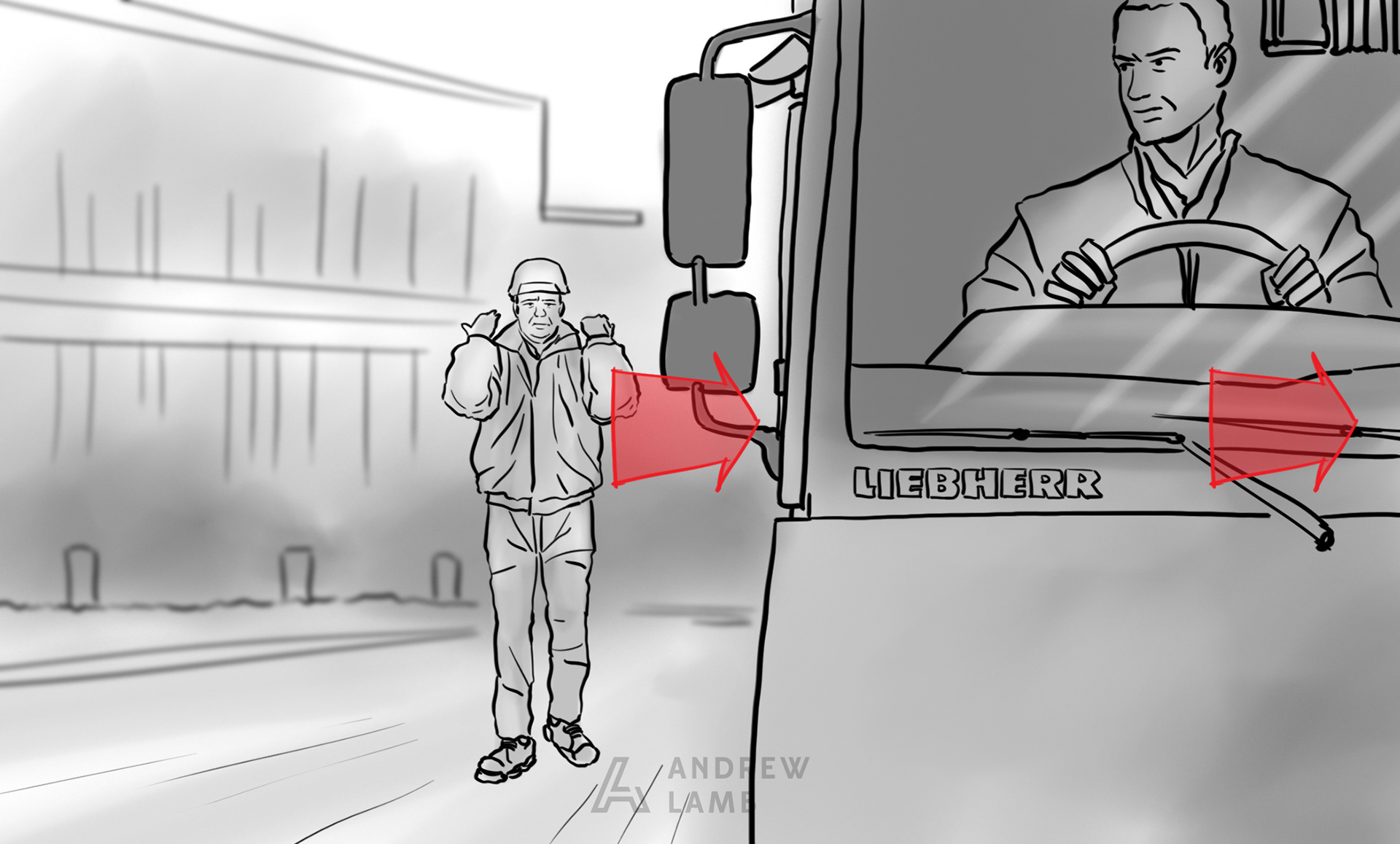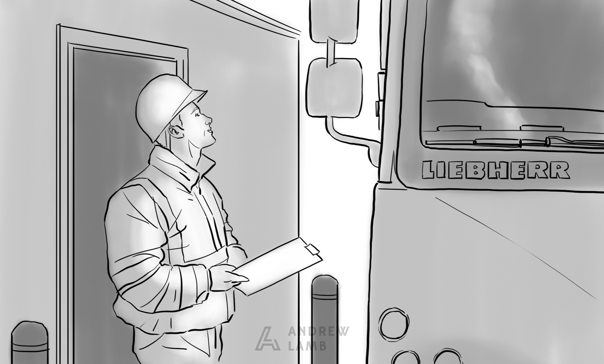 Below is a sample of the Storyboards I produced for a health & Safety video produced by Our Agency for Liebherr GB.